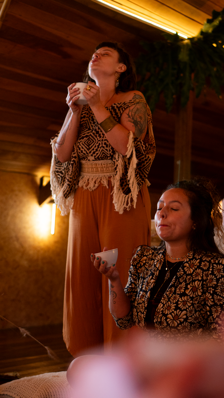 Um evento desse tipo inclui desde a cerimônia sagrada com o cacau, e a partir dela iniciando uma crescente energética através de movimentos corporais, respirações, até chegar ao set de ecstatic dance: momento para liberar e entregar tudo, transcender, encontrar o ecstasy com o próprio corpo através da combinação entre a medicina do corpo, e a condução sonora que irá acontecer.