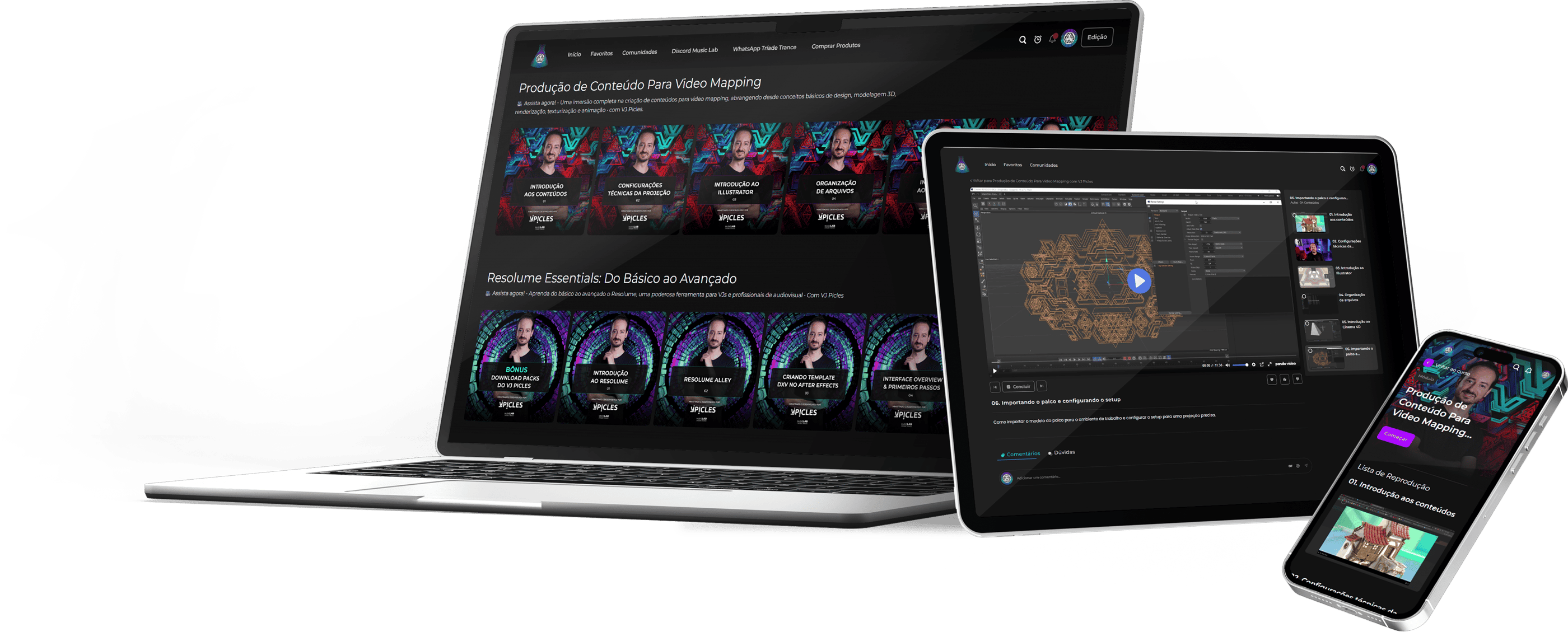 O Music Lab possui sua própria plataforma de ensino, onde estão disponíveis os cursos do VJ Picles.