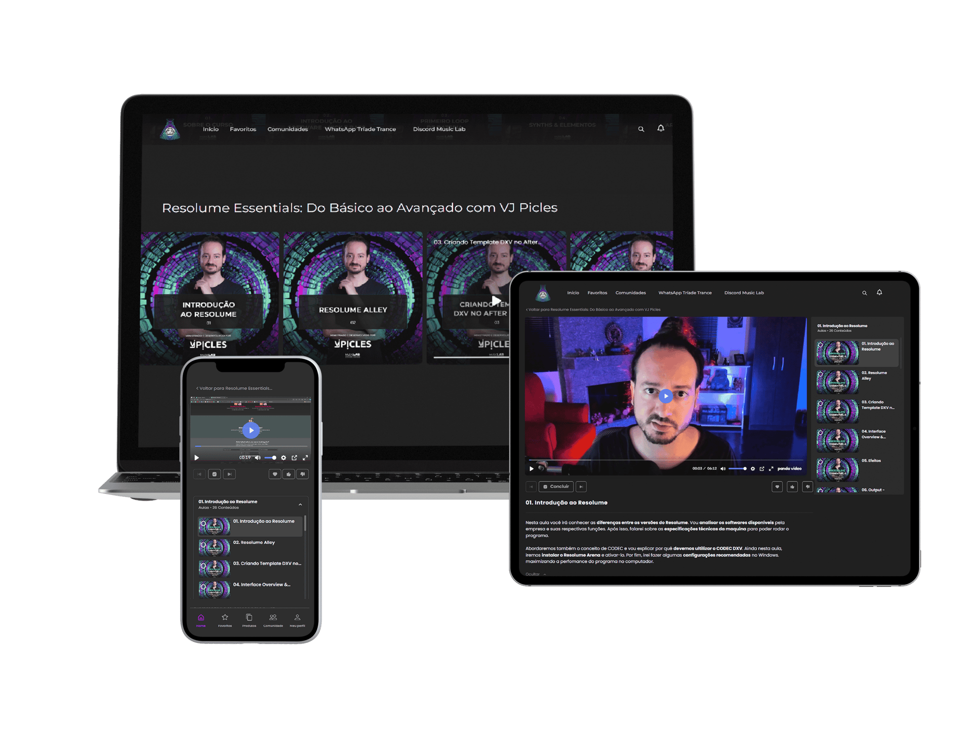 O Music Lab possui sua própria plataforma de ensino, onde está disponível o curso do VJ Picles.