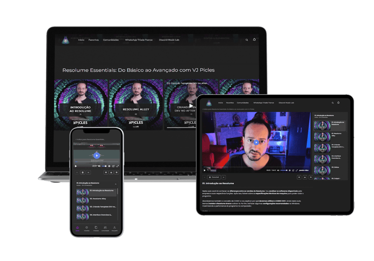 O curso abrange desde os fundamentos básicos até técnicas avançadas do Resolume, uma poderosa ferramenta para VJs e profissionais de audiovisual.